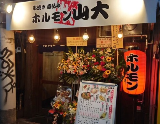 炭火で焼かれた串焼きやホルモン焼きそばが美味しい「ホルモン串焼き屋」。油揚げやつくねチーズもボリューム満点で、コスパもよき!笑顔のスタッフと共に楽しいひと時を!