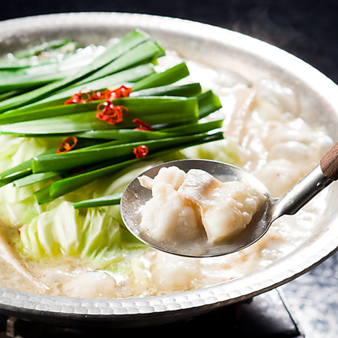 プリプリで旨味のある絶品もつ鍋!牛もつのジューシーな旨味が溶け出したスープは、寒い季節に身体に染み渡ります!王道醤油の味付けはサッパリとしていながらコクがあり、箸が止まらなくなる美味しさです!プリプリの食感も楽しめる、わん自慢のもつ鍋!