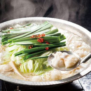 ぷりっぷりの博多もつ鍋は当店一番のおすすめメニューで、本場博多の味です!極上スープと絡み合う新鮮な牛もつと野菜が絶品!2種類の味からお好みを選べます!