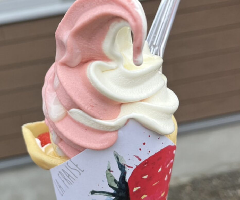 農園直送のいちごを贅沢に使ったスイーツが大人気!ソフトクリームやクレープ、かき氷まで、旬の苺をたっぷり味わえる。道の駅感覚でふらっと立ち寄れる、甘いひとときをどうぞ♪