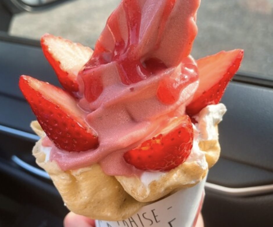 いちごスイーツ専門店「ラ・フレーズ」では、クレープ・パフェ・スムージーなど選ぶ楽しみがいっぱい!特に夏限定のかき氷は一度食べる価値ありです!