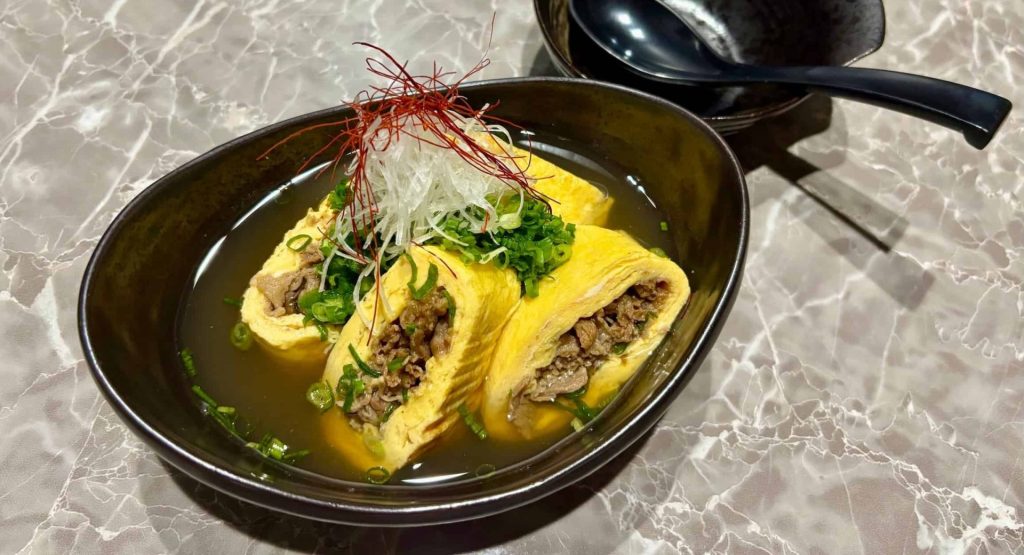 夜のおすすめ、肉巻きスープだし巻きは、ボリュームたっぷりのだし巻きと少し濃いめの牛肉の味わいが絶妙にマッチ。和風だしのスープと合わせて食べれば、バランス良く食事を楽しめます。半個室のゆったりした空間で、会話を楽しみながら贅沢な夜のひとときを過ごせるのも魅力です。