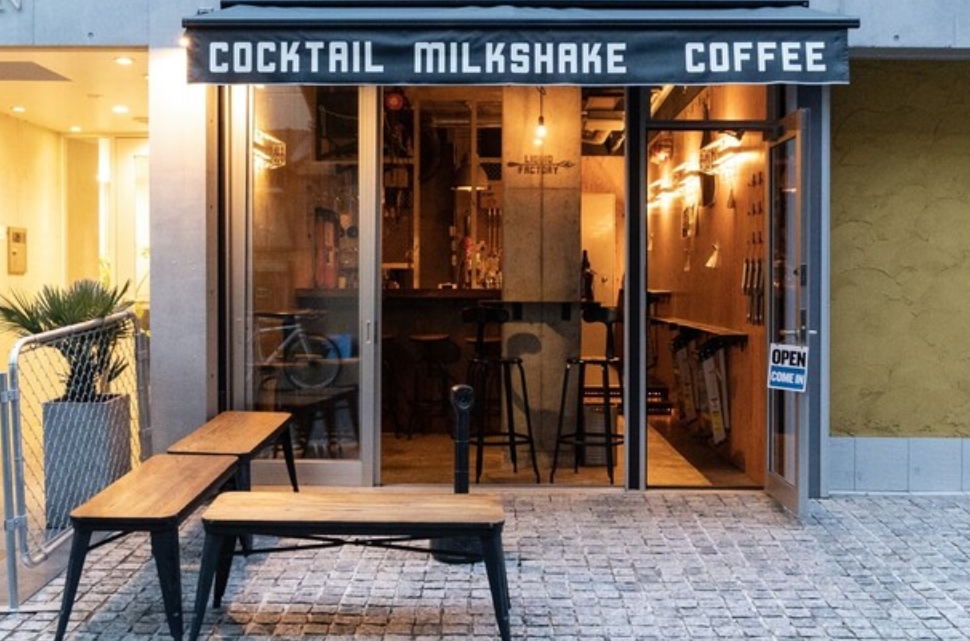 カフェとしてもバーとしても利用できる、雰囲気抜群の一軒。昼は香り豊かなコーヒーや優しい甘さのシェイクを、夜はこだわりの創作カクテルを楽しめます。スタンディングからテラス席までシーンに合わせて選べるのも◎