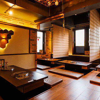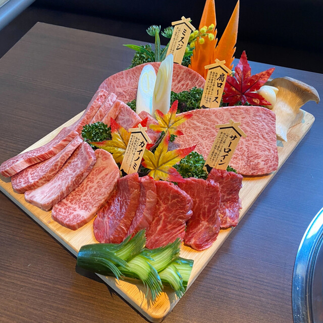 店内に一歩足を踏み入れると、シンプルかつ高級感のある落ち着いた空間が広がります。シックな佇まいながらも、壁の鏡が牛の頭型になっていたりと、さりげない遊び心に会話も弾みそう!全9卓のテーブル席は仕切りで個室のような演出も可能です。普段のお食事から各種ご宴会まで、どうぞお気軽にお立ち寄りください!