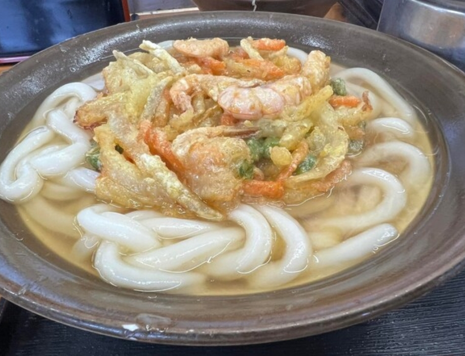 お子様セットから定番の肉うどん、豪華なかき揚げまで、どのメニューもボリューム満点!コスパが抜群で、お腹も心も大満足。福岡三大うどんの一角として、観光客にも人気の名店です。