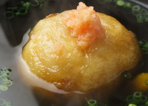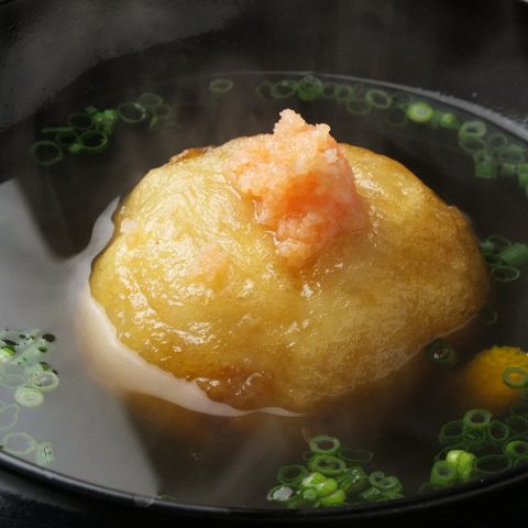 外はサクッと、中はほわっとした食感のじゃがいも饅頭が大人気!自家製だし汁に浸して、絶妙な味わいを堪能できます。お酒のおつまみとしても最適です。