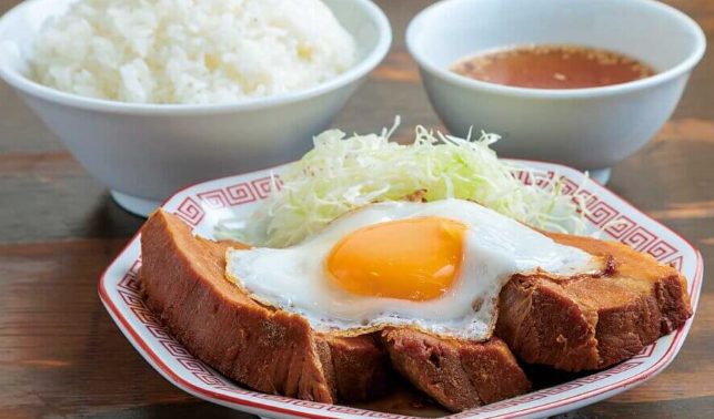 ボリューム満点の定食が揃い、しっかり食べたい人にぴったり。看板のチャーシューエッグ定食は極厚肉が贅沢に盛られ、ご飯が進む味付けが魅力。おかず倍量の“メガ”メニューもあり、圧倒的な満足感を味わえる。