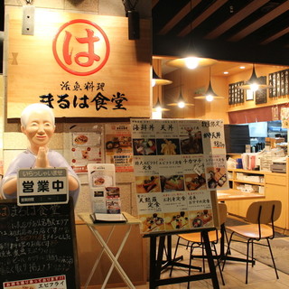 まるはの創業者「相川うめ」のおばあちゃん像が目印!優しい木の風合いと元気なスタッフの声が心地良い店内は、カウンター&テーブル席で、仕事帰りのサク飲みやご友人同士でワイワイやるにも打ってつけ◎だって、新鮮&ボリューム&早い&安いから!いつでも気軽に立ち寄れる美味しさと雰囲気が魅力♪