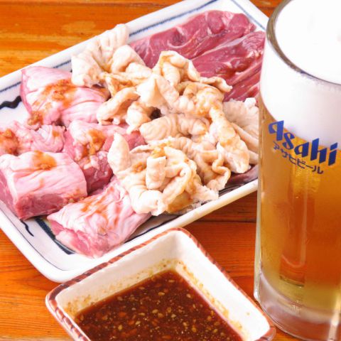 初来店ならぜひ試したいのが、生ビールと数種のホルモンを一度に楽しめるお得なセット。ぷりっとした食感と程よい脂の旨みで、最初の一杯が一気に進みます。ボリューム感がありながら価格は良心的で、仕事帰りの一人飲みや軽めの食事にも使いやすい一品です。