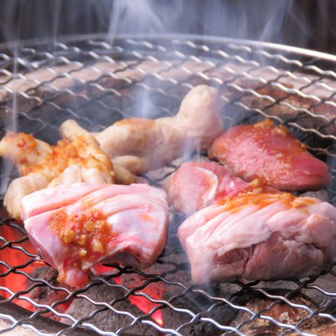 数あるホルモンの中でも特に人気なのが白もつ。クセが少なく、ぷりぷりとした食感ととろける脂のバランスが絶妙です。炭火七輪で自分好みに焼き上げることで、香ばしさも加わり、ビールとの相性は抜群。日常使いしやすい価格も嬉しいポイントです。