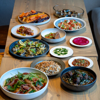 8時半からのモーニングタイムでは、自家製クロワッサンを使用したサンドイッチや新潟から取り寄せている豆を使用したコーヒー・ラテで優雅な朝をお過ごしいただけます。11時のブランチタイムでは野菜を中心としたヘルシーなビッフェやアラカルト、種類豊富なデザートや特性ドリンクでゆったりとしたティータイムを。17時以降は中近東風料理とナチュラルワインのマリアージュを堪能するワインバーに大変身!