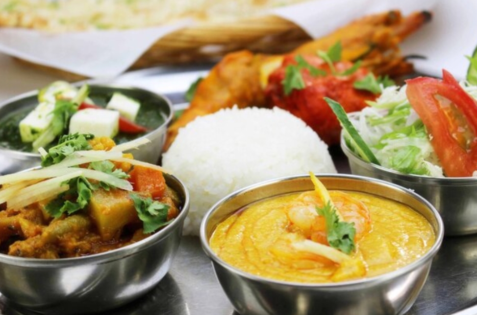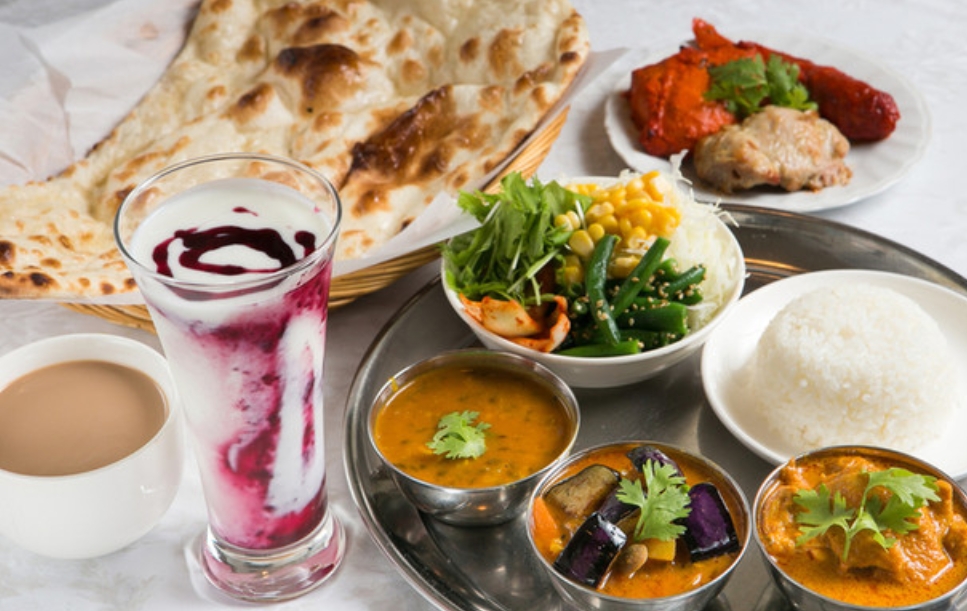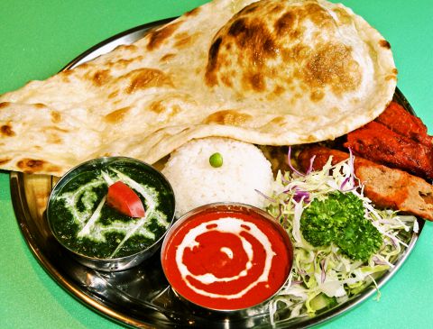 人気カレー8種から好きな2種を選べます。タンドリーチキン、シシカバブ、サラダ、ハーフナン、ハーフライスも付きます。更にドリンクにも付いています。インド料理代表の品品全て揃い!