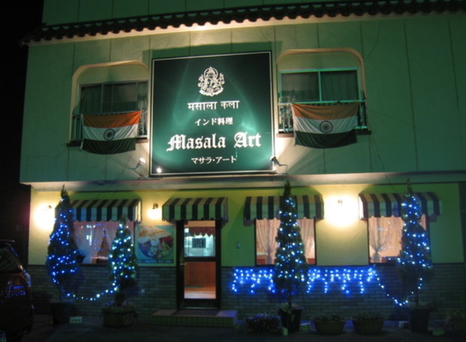 ※南甲府インター出口より右に曲がり、新平和通りに入り8分。黄色看板インドカレー マサラアートが目印です。