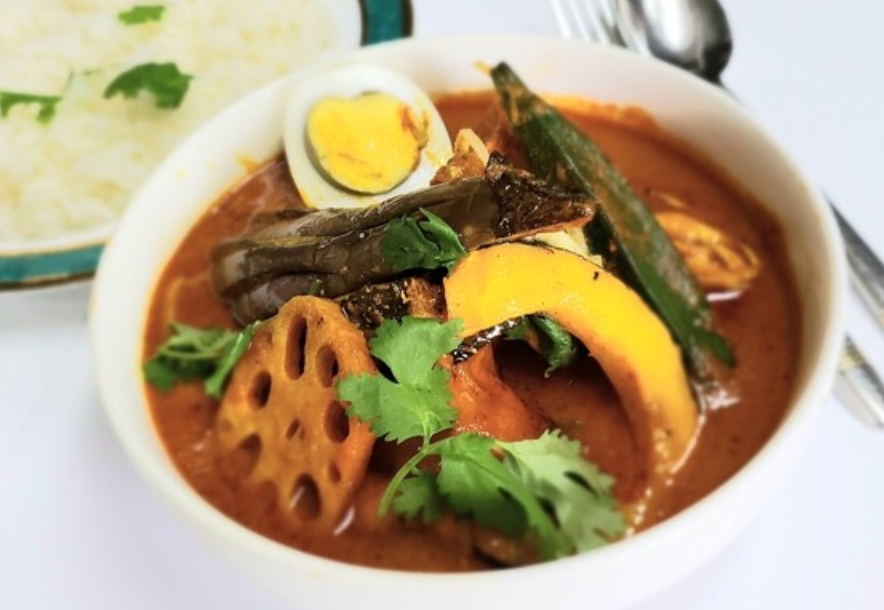 香ばしく焼き上げたタンドリーチキンに、トマトの酸味とクリームの甘味が程よくミックスされたカレーです。