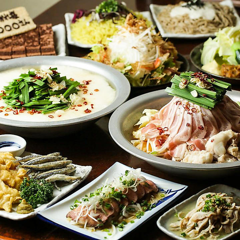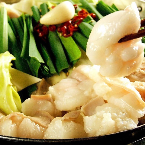 もつ鍋は4種類の中からどうぞ!スタンダードな【国産牛もつ鍋】、若どりも入った【もつ&若どり鍋】、たっぷりの葱が爽やかな【葱たっぷりもつ鍋】、牛もつ、海鮮・鶏・たっぷりの野菜の入ったボリューム満点【もつちゃんこ鍋】!