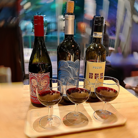 飲み放題、選べるワイン飲み比べセットあります。○飲み放題¥1700(70分)生ビール、ハイボール、サワー、カクテル、グラスワイン、焼酎(+¥300でスパークリングワイン付きに変更可)○選べるワイン飲み比べセット¥1200。6種類のワインの中からお好きな3種類を選んで飲み比べしていただけます。(ワインの内容は定期的に変更いたします)☆ボトルワインも多数ご用意ございます☆