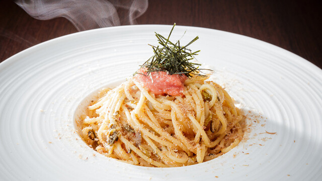 自家製ソースを使用したパスタやハンバーグなど、豊富なフードを揃える当店は、1軒目使いにもぴったり!一番の看板メニューは「具材が選べるアヒージョ」。エビやホタテなど、15種の具材の中から、お好きなものを2~4種程チョイス可能。有頭エビは、エキスがオイルにたっぷり染み込むイチオシの具材です。また、女子会にも最適な飲み放題付きコースもあり◎ほか、季節の旬素材を使った特別メニューやスイーツもお見逃しなく!