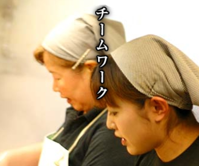 できたてを、いち早く提供できるよう、愛情をもってスタッフ一同うどん作りに励んでおります。作業効率をよくするために、作業台の位置を数cm単位で調節、スタッフそれぞれが自分の持ち場を確保し、迅速に対応します。