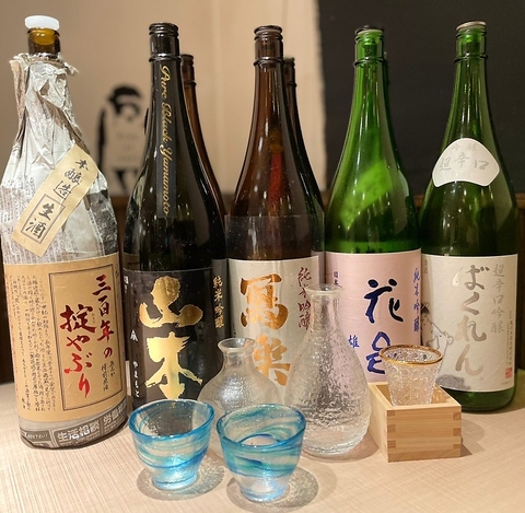 当店では新鮮な食材を生かしたお料理にピッタリなお酒のメニューをご用意しております! 日本酒は時期によっておすすめのお酒を常時9種類前後ご用意。隠し酒も複数ご用意がございますので、ご来店時にスタッフまでお気軽にお尋ねください!