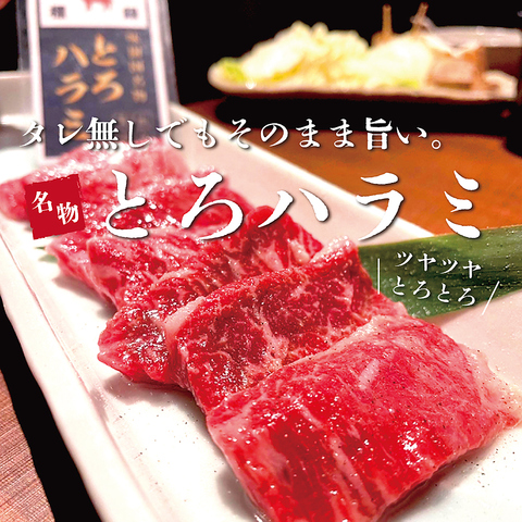 ハラミの本当に美味しい部位を厳選し、独自の製法で柔らかくてとろとろの食感に仕上げました。お忍びデートや女子会、大人コンパ等…あらゆるシーンにどうぞ♪もちろん大型宴会にも対応しています!