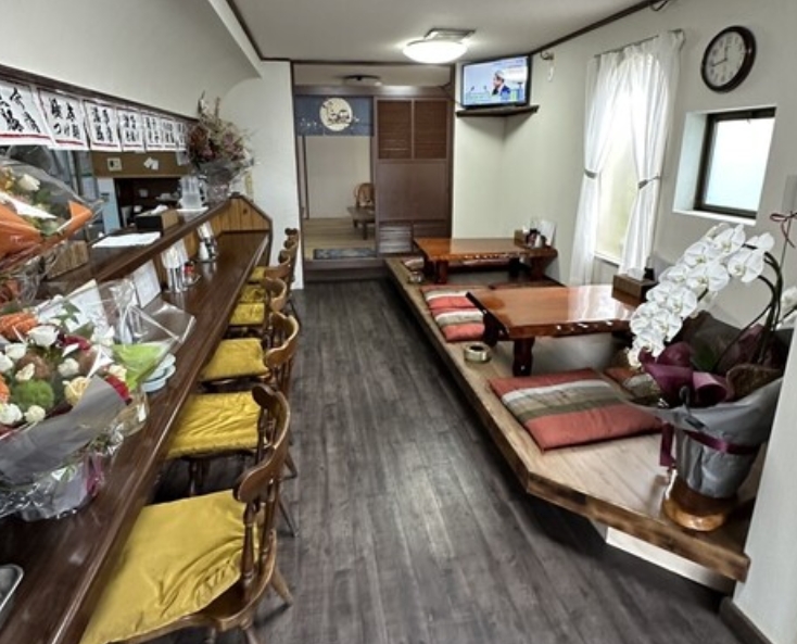 (カウンター6席、テーブル4人×2卓、座敷6人×2卓)