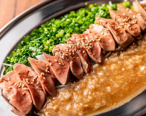 希少な白レバーを刺身でいただけます。自家製の塩だれをつけてお召し上がりください。口の中でとろけます!