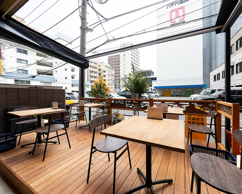 平日限定コースは2時間飲み放題付で3,500円と破格!看板メニューもも焼きなど全6品とボリューム満点!大人気なテラス席は予約必須!!喫煙OK!