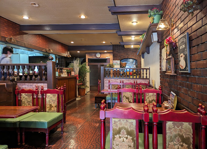 店内は喫煙可能で、落ち着いた雰囲気が漂っています。地元のお客様から観光客まで幅広い客層が訪れ、心地よい空間でコーヒーや食事を楽しむことができます。昭和の香りが漂うこの場所で、心温まるひとときをお過ごしください。