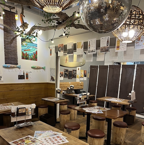 内装もしっかりこだわってます!木目のテーブルが温かい、丸太のような椅子もこだわりポイント!お一人でランチ、少人数での飲み会、会社宴会等々大歓迎!!飲み放題付きコースもご用意あり!