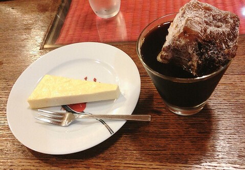 昭和レトロな雰囲気漂う純喫茶「無」。巨大なコーヒー氷が特徴のアイスコーヒーは深みのある味わいで、氷が溶けにくいのでゆっくりと楽しめます。手作りのレアチーズケーキもおすすめ。