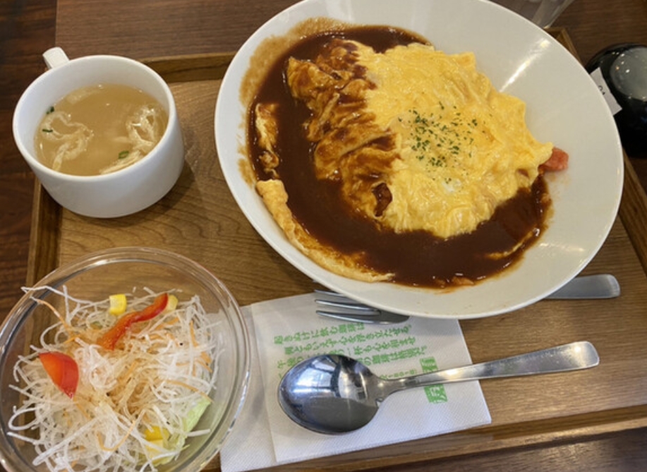 ケチャップの甘みが絡むナポリタンや、オムライス風オーバーライス、チーズがとろけるホットサンドなど、昭和の香りが漂うランチが人気。味噌汁やマカロニサラダも付いて、洋食と和食が融合した独特のセットが楽しめます。
