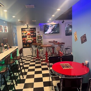 50~60年代アメリカンダイナーをイメージした【AmericanDinerEMILY】。POPでおしゃれな空間で装飾にもこだわった店内には、カウンターやスタンディングもございますので、お一人様も大歓迎!