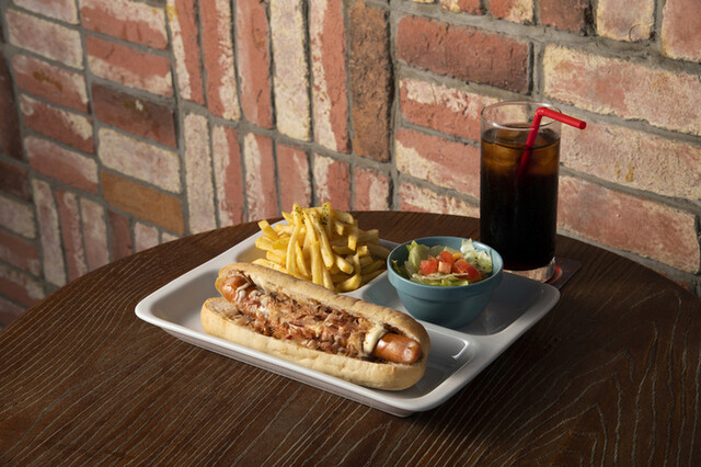 当店では2024年2月から新メニューをご提供!メガドッグ・ハンバーガー3種・メガ盛りスパゲッティ2種・クリームソーダなど!中でもおすすめなのは、プレッツェル生地を使用した特製バンズで作る3種類のハンバーガー!
