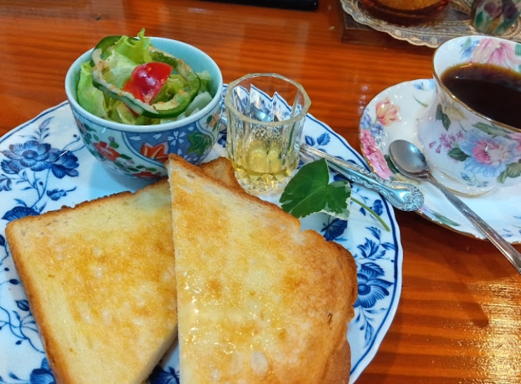 モーニングではトーストに蜂蜜やサラダが付いた嬉しいセットが用意され、朝から贅沢な気分に。すっきりとした後味のカフェオレやブレンドコーヒー、モチモチ食感のわらび餅など、多彩なメニューで幅広い楽しみ方ができるお店です。