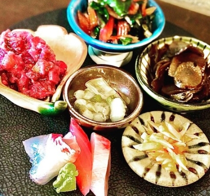 お造りに、珍味、お惣菜など色々と盛り合さって彩りも豊か、まず菜乃庵を楽しむには十分な内容なんです。写真の中盛(1600円)以外にも、1-2名様向けの小盛1000円、3~4名様向けの大盛2200円もご用意していますので、人数やお腹の具合で選んで下さい。お電話でご予約時に、このセットか各コースをご注文いただけますと、お待たせすね事なくお出しできると思いますので、ご検討下さい。