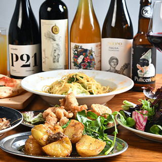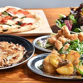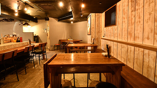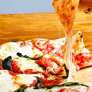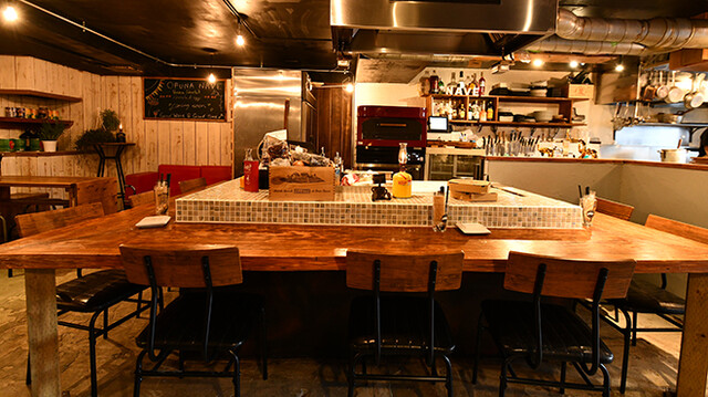 ピザは「王道のマルゲリータ」や「しらすの釜揚げピザ」から、一品料理では「ナポリ風肉団子」「ローストポークトンナートソース」など、イタリアン×居酒屋のいいとこ取りメニューが。木の温もりとレンガの質感を活かした店内は、お一人様でも気兼ねなく過ごせるカウンター席と、仲間で語らうテーブル席をご用意。