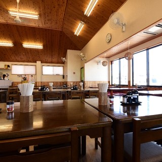 近隣にお住いの方を中心に、老若男女問わず愛されています。地元の方が気軽に訪れることができるよう、駐車場も48台完備◎ご予定がてらふらっとお立ち寄りください。窓がたくさん備え付けられた開放的な店内には、全92席をご用意。お一人様もグループでのご利用も可能なテーブル席に加え、お子様連れにぴったりな座敷もございます。セルフサービスのため自身のペースでご利用ください。