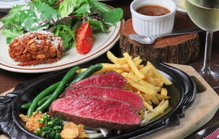当店にお越しの際にぜひお召し上がりいただきたいのがお肉料理。黒毛和牛A5ランク以上のお肉を使用したステーキは、産地にはこだわらずその日最高のお肉を仕入れ、薪で包んで焼くため香ばしい香りが広がります。”いいものを原価に近い値段”にこだわった上質なお肉をお召し上がりください!