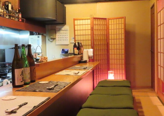 カウンター席では、大将が調理する様子を間近で見ながら、会話を楽しむことができます。落ち着いた店内は、リラックスしたひとときを提供し、友人や大切な方との食事にぴったりの場所です。