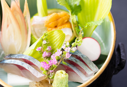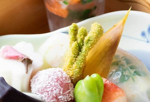 四季折々の大分産食材をふんだんに使った和会席をお楽しみください。新鮮な魚介や旬の野菜を活かし、素材の旨味を最大限に引き出す匠の技で仕上げた一品一品は、目でも舌でも楽しめます。