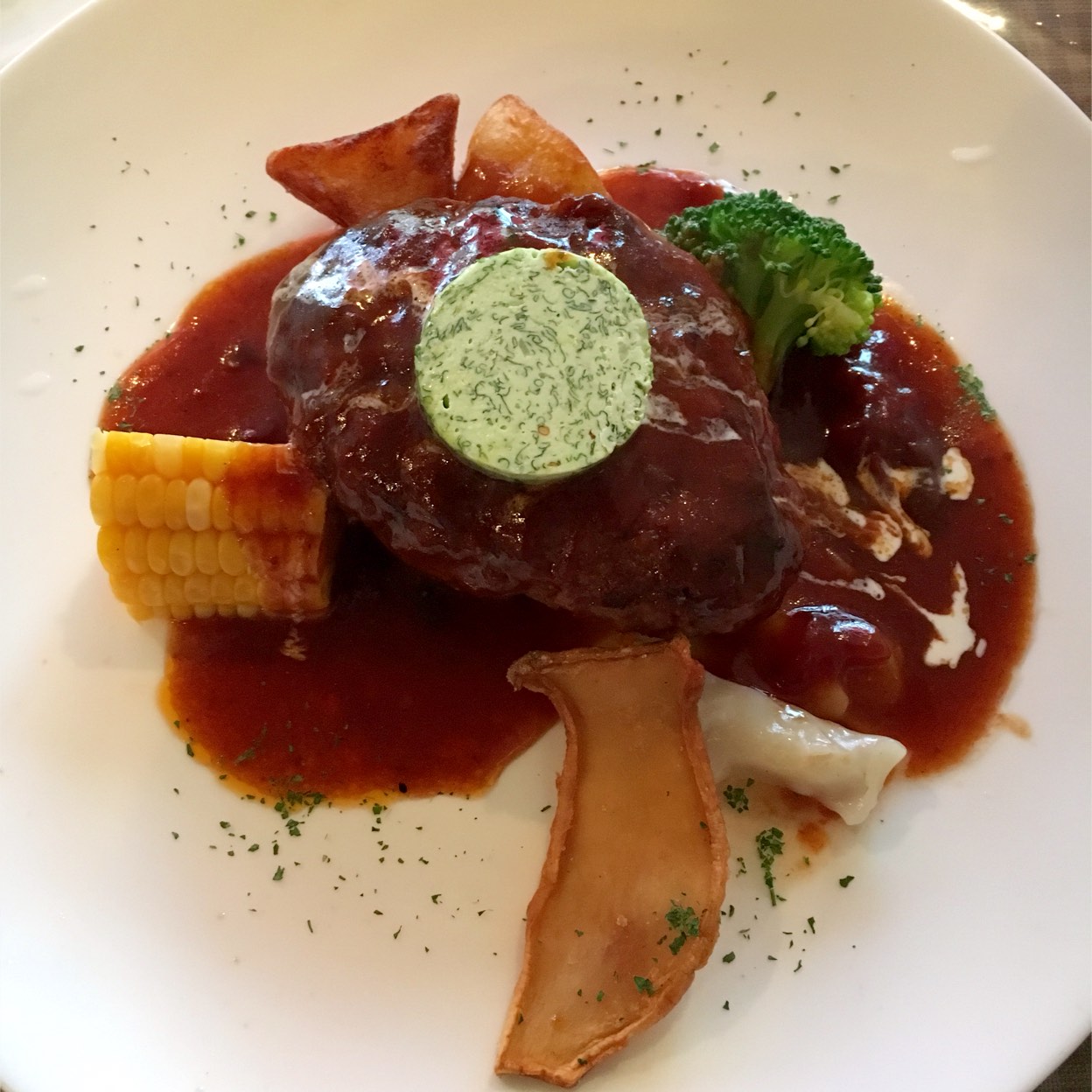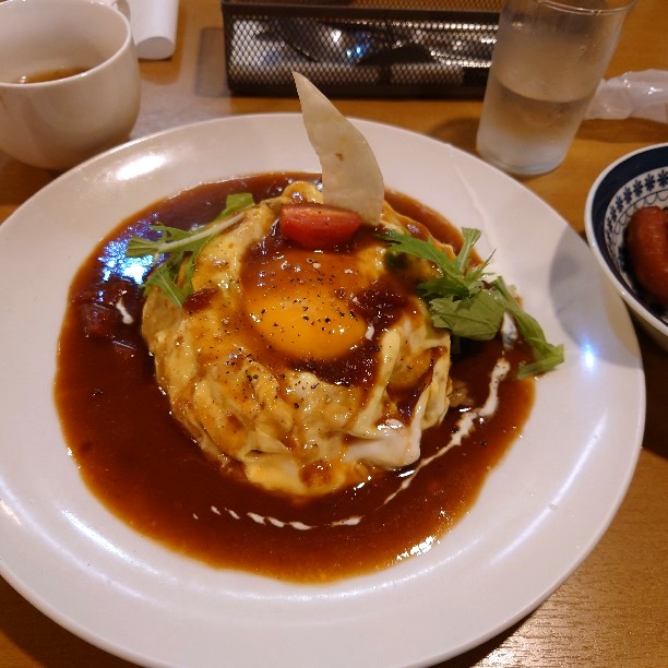 濃厚なデミグラスソースとふわとろ卵が絶妙に絡むオムライスと、ジューシーで柔らかい大きなハンバーグが魅力的。贅沢なひとときを提供します。