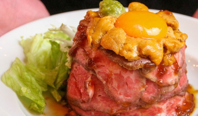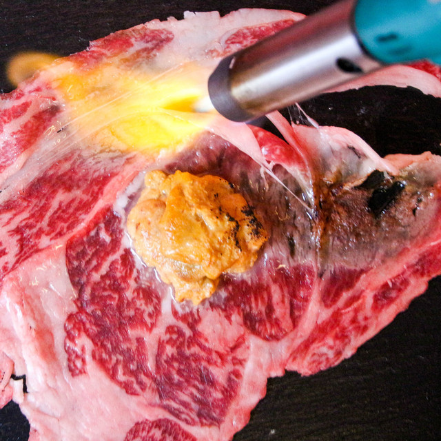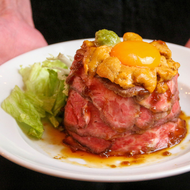 極上の肉に濃厚な雲丹を合わせた、贅沢な炙りメニューが登場。香ばしく炙ることで旨みが一体となり、口に入れた瞬間に広がる濃厚な味わいがたまりません。ランチでも楽しめる華やかな一皿は、自分へのご褒美や特別な食事シーンにもおすすめです。
