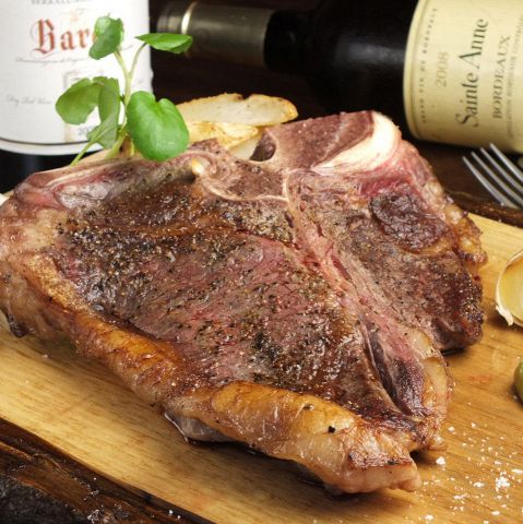 肉をガッツリ食べたい人に◎!一目見ただけで虜になる、まさに『肉塊』!ヒレとサーロインを一度にお召し上がりいただける骨付きステーキです!見た目とは裏腹に、柔らかくてジューシーで旨味たっぷり♪一度は食べたい一品です♪