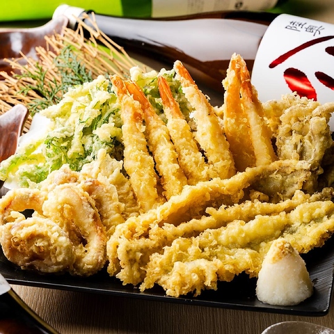 新鮮なお刺身盛合わせ、串焼き、旨塩唐揚げなどの美味しい定番料理から、天ぷらや定食などのお食事・会食にも最適なメニューを数多く取り揃えております。ビール、サワー、焼酎、日本酒などのドリンクとも相性抜群◎逸品料理の数々を食べて飲んでお楽しみください!
