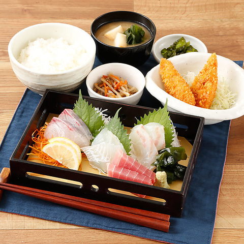豊洲市場買付だから出来る、鮮度とボリューム!新鮮な旬の魚をたらふく味わっちゃってください!他にも鶏唐揚げ定食などの、お肉の定食も多数ご用意しております!