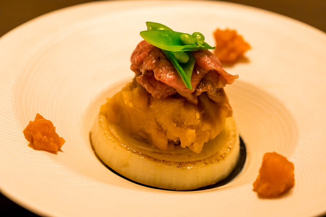 全国の銘柄牛の中から目利きした厳選牛は肉質・脂が良質で深い味わいの黒毛和牛”雌牛”を使用。噛み締める程に味わい深く、飽きのこない雌牛に旬の食材や和の香りを加え、お愉しみ頂けます!