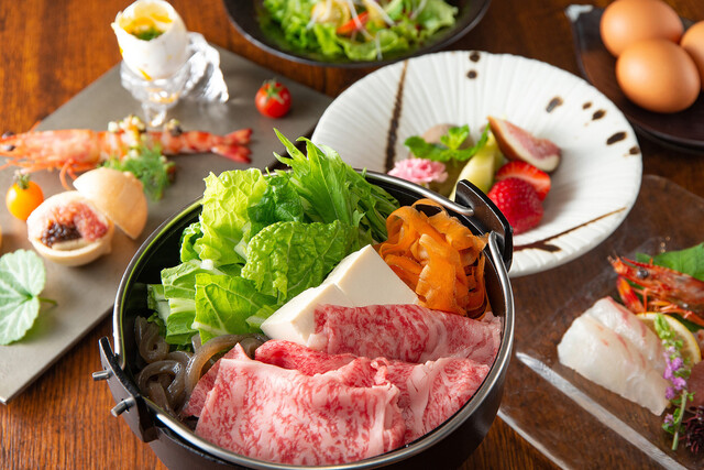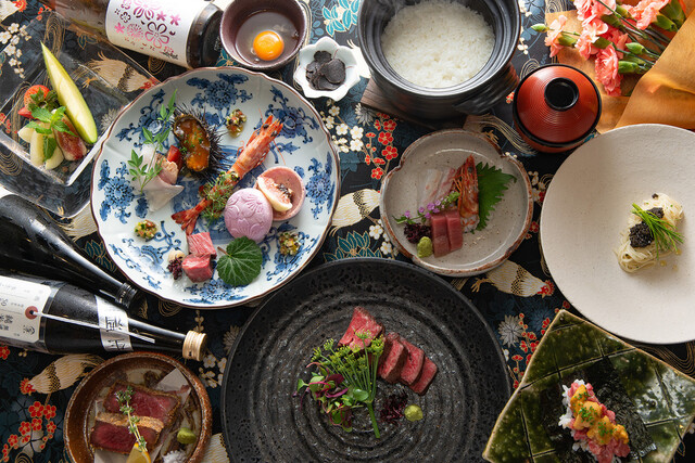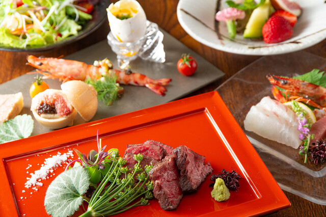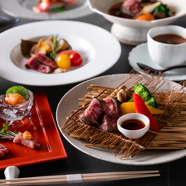 和牛本来の美味しさと調理人の巧みな技と美しい料理の彩り、五感で楽しむお食事をご提供致します。