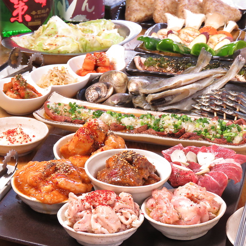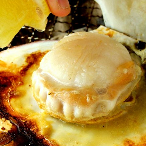 ホルモンだけじゃない?!?!《横浜中央市場から直送》その日の朝獲れた超新鮮魚貝類を、目の前の炭火七輪で焼き上げる♪♪♪磯の香りが香ばしく店内を包み込む・・・食欲そそります!