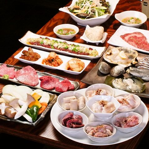 ●ナムル3種盛り合わせ/チョレギサラダ/新鮮レバテキ盛り/海鮮盛り合わせ/和牛ホルモン盛り合わせ/焼き野菜盛り/黒毛和牛4種盛り合わせ/〆の焼きおにぎりorデザート●大夢のオススメが詰まった大満足コースを是非ご利用ください♪