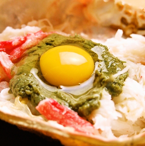 貝の甲羅の上にたっぷりのズワイの身、《新鮮なカニ味噌》、一番上にうずらの黄身がのった贅沢な一品。濃厚な旨さは常連さんに大人気★★★網焼きがたまらない!ぜひ!一度お試しください◎やみつきになること間違いなし!